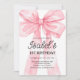 Invitación Primer cumpleaños de Bow rosado, primera cinta ros