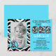 Invitación Primer cumpleaños de impresión azul Zebra