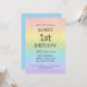 Invitación a la fiesta de primer cumpleaños del chica con una sirena arco iris escala fondo. Por favor, compruebe la colección de abajo para ver más colorida decoración y materiales fiestas del primer día.