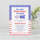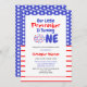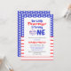 Invitación de primer cumpleaños de un pequeño petardo y moderno patriótico. El fondo es blanco, pero se puede personalizar según el color que elija.