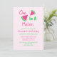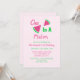 Uno en una invitación de primer cumpleaños de melón con escritura de color rosa y verde