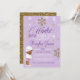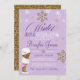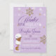 ¡Bienvenidos a una Tierra de Invierno! Esta adorable invitación de primer cumpleaños presenta elementos lavendares y púrpura entre copos de nieve de oro purpurinoso y acentos. Pero lo más destacado es la preciosa y adorable niña de invierno, varias opciones en la tienda para que se adapte mejor a tu pequeña.