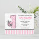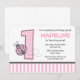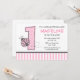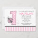 Diseño de 1º cumpleaños con un ladybug rosa y gris sobrevolando un gran número 1 lleno con un patrón de puntos polka rosa y blanco. Agrega tu propio texto personalizado. ¡PinkInkArt original!