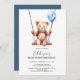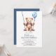 ¡Celebra el primer cumpleaños de tu hijo con estas adorables invitaciones de la fiesta de osos de peluche! El diseño se compone de un adorable oso de peluche acuarela que se balancea suavemente sobre un balancín de madera, mientras sostiene un globo con el número uno escrito en él. Utilice las herramientas de diseño para personalizar del texto y las fuentes. También disponible como descarga digital para la invitación.