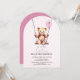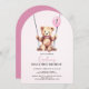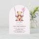 ¡Celebra el primer cumpleaños de tu hijo con estas adorables invitaciones de la fiesta de osos de peluche! El diseño se compone de un adorable oso de peluche acuarela que se balancea suavemente sobre un balancín de madera, mientras sostiene un globo rosa con el número uno escrito en él. Utilice las herramientas de diseño para personalizar del texto y las fuentes. También disponible como descarga digital para la invitación.