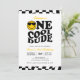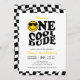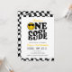 Un tipo genial sonrisa ondulada se enfrenta a la invitación de primer cumpleaños.