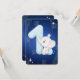 Celebra un gran hito con este diseño de cumpleaños del bebé pequeño. Con un adorable elefante personalizado vestido con una pequeña corona, sentado al lado de un gran número azul "1", esta encantadora obra de arte es perfecta para el tema de la fiesta de primer cumpleaños de un niño, invitaciones o artículos de sake. El fondo azul profundo, las estrellas brillantes y los festivos confeti lo convierten en una opción atractiva y reconfortante para celebrar un primer año especial.