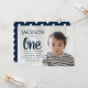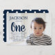 Invitación a la fiesta de primer cumpleaños de un niño de la marina azul y blanco polka.