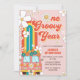 Invitación Primer cumpleaños del arco iris retro de un año gr