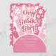 Invitación de primer cumpleaños con flores de margarita para el Chica Rosa One Groovy Retro Rainbow.