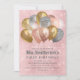 Cálidos globos rosados, plateados y dorados invitaciones a la fiesta de primer cumpleaños de una niña pequeña.