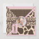 Invitación Primer cumpleaños del estampado de animales rosado