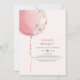 Invitación Primer cumpleaños del niño con globo rosa suave y
