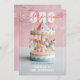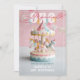 Celebra el primer cumpleaños de tu pequeña con esta invitación al carrusel de unicornio pastel, perfecta para una celebración mágica. (Obra de arte generada por IA)