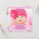 Bonito Polka Dot Primer Cumpleaños Primer Fiesta Nacimiento Bebé Chica Blanco Pasteles rosados White Bow Añadir Foto. Elegante y elegante, todo el tiempo cambia la edad. Plantilla de invitaciones de cumpleaños de fiesta