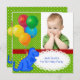 Invitación Primer cumpleaños primer dinosaurio Green Blue Boy