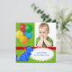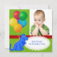 Dinosaurio Azul Verde Primer cumpleaños Primer niño colorido bebé globos azules Primer Fiesta de cumpleaños niño niño bebé Añadir foto. Todas las ocasiones del bebé sólo cambian la edad. Plantilla de invitaciones de cumpleaños de fiesta