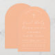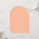Una simple y moderna chica en forma de arco invitación a la primera comunión. Sólo tiene texto blanco sobre fondo rosado rosa polvoriento. En la parte superior hay una cruz con texto en arco encima de ella. La ocasión y el nombre están escritos en guión.