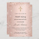 Invitación Primer rosa de purpurina de oro de la comunión