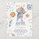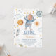 Primer viaje alrededor del código QR del Sol Invitación al primer cumpleaños Espacio exterior dulce o primer viaje alrededor del sol invitación a cumplir un primer cumpleaños para un niño que muestra la foto de su pequeño niño en el casco espacial. Este primer viaje alrededor de la invitación del primer cumpleaños del sol también incluye un pequeño sol, planetas, estrellas, nave espacial y espacial. En la parte posterior de la invitación aparece un código QR reemplazable.