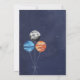 Moderna invitación para una fiesta de cumpleaños. El espacio inspiró el primer viaje alrededor del sol con planetas de acuarela y un cohete.