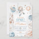 Invitación Primer viaje azul astronauta alrededor del cumplea