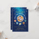 Celebra el primer cumpleaños de tu hijo o hija con la invitación temática del espacio. Presenta un astronauta sosteniendo planetas en globo en el cielo espacial con falsas estrellas de oro. Houston, tenemos un niño de un año, para su primer viaje alrededor de la formulación del sol.