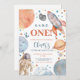 Primer viaje alrededor del Astronauta Sol Personalizar de la invitación de fiesta de cumpleaños la plantilla con los detalles de su fiesta - nombre y edad del niño, fecha y hora del fiesta, dirección de la ubicación del fiesta e información de rsvp.