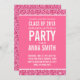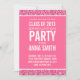 CLASE PRIMERA DE LA INVITACIÓN PARTIDARIA 2013 CON UN FONDO IMPRESO DE IMÁGENES DE PURPURINA PINK Y TEXTO BLANCO MODERNO QUE SE PUEDE PERSONALIZAR Y PERSONALIZAR DE LA FUENTE DE TEXTO Y EL COLOR DE TEXTO. Un diseño bonito, fresco, divertido, moderno y simple para tu chica graduado, tu hija graduada. Añade tus propias fotos o gráficos en la parte delantera o trasera de las tarjetas. Grado de secundaria, grado universitario, grado universitario. Agregue la información, el nombre y otros detalles de su fiesta. Diseño de Elke Clarke©
