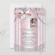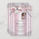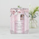 Foto rosa invitación a la primera comunión con elegante fondo plateado y gris y perlas de bonito y arco rosa con cruz y corazón, y hermoso marco de imagen rosa para tu foto. Esta hermosa invitación rosa a la primera comunión se personaliza fácilmente para tu evento simplemente añadiendo tus detalles de foto y evento en el estilo de fuente, color y redacción de tu elección. Puedes recortar tu foto y mover el marco a donde quieras, ya que lo hacemos más pequeño o más grande. Se trata de un diseño impreso sin cintas, arcos, perlas, purpurinas, etc.