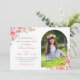 Un personalizado asequible imprimió invitaciones de la Primera Comunión Santa personalizadas con sus detalles del evento y la foto. Este diseño botánico de bonito presenta una acuarela con flores de color rosa y coral. Utilice las herramientas de diseño para personalizar del texto, editar los tipos de letra y los colores o añadir sus propias fotos para crear una amable invitación floral rústica para el Sacramento Católico Cristiano de la Primera Comunión.