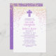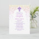 Un diseño moderno y contemporáneo de primera comunión para su gran día. El confetti rosa y morado y la tipografía simple le dan a este diseño un ambiente clásico y divertido.