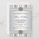 Elegante fondo blanco plateado con adornos de joyas de oro y plata y cruz blanca en la primera invitación de la comunión sagrada del chica de atrás.