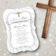 Un diseño moderno y contemporáneo de primera comunión para su gran día. El fondo blanco y la simple tipografía le confieren a este diseño un ambiente elegante y elegante.