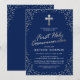 Invitación Primera Comunión Azul Marino con Brillo Plateado
