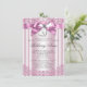 Invitaciones de primera comunión rosadas para niñas con lazo rosa y cruz con corazón en un hermoso fondo de remolino rosa. Puede personalizar fácilmente esta hermosa invitación de primera comunión agregando sus detalles en el estilo de fuente y color, y redacción de su elección. Este es un diseño impreso sin joyas reales, perlas, purpurina, etc.