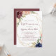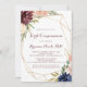 Esta caligrafía dorada geométrica y rústica es la primera invitación a la comunión, perfecta para un evento religioso moderno. El diseño se compone de acuarela de color púrpura, marina, rubor, burdeos, flores de la marina, hojas verdes y doradas y un marco geométrico elegante.