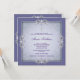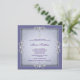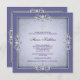 Elegante damasco de lavanda morada con borde floral y cruz blanca perlina primera invitación a la comunión santa.
