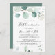 Esta invitación veraniega al eucalipto verde es perfecta para un evento religioso moderno. El diseño presenta hermosas hojas de eucaliptos verdes de color acuático pintadas a mano que inspiran el encanto natural.