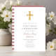 Personalizado De Tiras Rosadas Modernas Invitación A La Primera Comunión Chica.