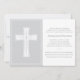 Esta tierna y moderna invitación a la Primera Comunión presenta una elegante cruz blanca y un fondo gris. Personalizar con los detalles del evento.
