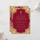 Invitación Primera Comunión de Niña Burgundy Hojas Doradas Vi