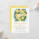 Esta invitación floral para la primera comunión de una niña tiene una cruz de falso foil dorado en una corona de rosas amarillas de acuarela. La ocasión y el nombre están en rosa, el resto del texto está en mayúsculas verde oscuro. El nombre está escrito en una elegante letra caligráfica. La parte posterior es rosa.