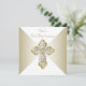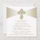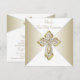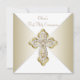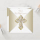 Invitación de Primera Comunión Blanca y Dorada con elegante cruz de diamantes dorados en un hermoso fondo dorado y blanco. Puede personalizar fácilmente esta bonita invitación de Primera Comunión dorada agregando los detalles de su evento en el tamaño y color de la fuente, y la redacción de su elección. También puede cambiar el color de fondo.