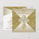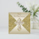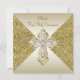 Invitación de Primera Comunión dorada con una elegante cruz de diamantes dorados sobre un hermoso fondo de purpurina dorada. Puede personalizar fácilmente esta bonita invitación de Primera Comunión dorada añadiendo los detalles de su evento en el tamaño y color de fuente, y la redacción de su elección. Este es un diseño impreso sin diamantes reales, joyas, purpurina, etc.