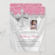 Invitaciones de primera comunión rosas y blancas con cruz de perlas sobre una bella satén blanca y fondo purpurina rosa. Esta invitación a la primera comunión de fotos rosa bonito se personaliza fácilmente para tu evento añadiendo tus detalles del evento, estilo de fuente, tamaño de fuente y color, y texto. Puedes recortar tu foto y mover el marco a donde quieras, ya que lo hacemos más pequeño o más grande, o eliminarlo. Es un diseño impreso sin cintas, arcos, perlas, purpurinas, etc.