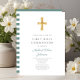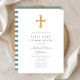 Modern Green Stripes Cross Boy Invitación De Primera Comunión.