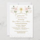 Invitación Primera Comunión. Elegant card design featuring watercolour delicate pink flowers, faux gold outlined roses, a faux gold shining cross, faux gold confetti, on a white background. Use Personalize tool to add your info. For matching items, please, visit my Elegant Baptism Christening Collection.