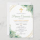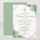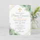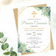 Celebra la Primera Comunión de tu hijo con esta elegante invitación que presenta hermosas hojas verdes en acuarela y una delicada cruz. Esta invitación religiosa captura perfectamente la esencia de una Comunión Católica, combinando ternura y sofisticación para crear un recuerdo memorable para este día tan especial.