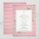 Con delicadas hojas de verde acuarela sobre un fondo de madera rústica rosa, y un elegante crucifijo dorado, esta elegante invitación para la primera comunión puede ser personalizada con tu información especial. Diseñada por Thisisnotme©